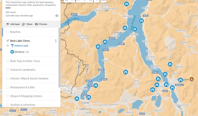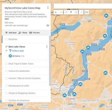 Beaches, picturesque villages, lakeside restaurants, historic villas, and the most stunning viewpoints: all in one exclusive Google My Maps map created by MySecretView.